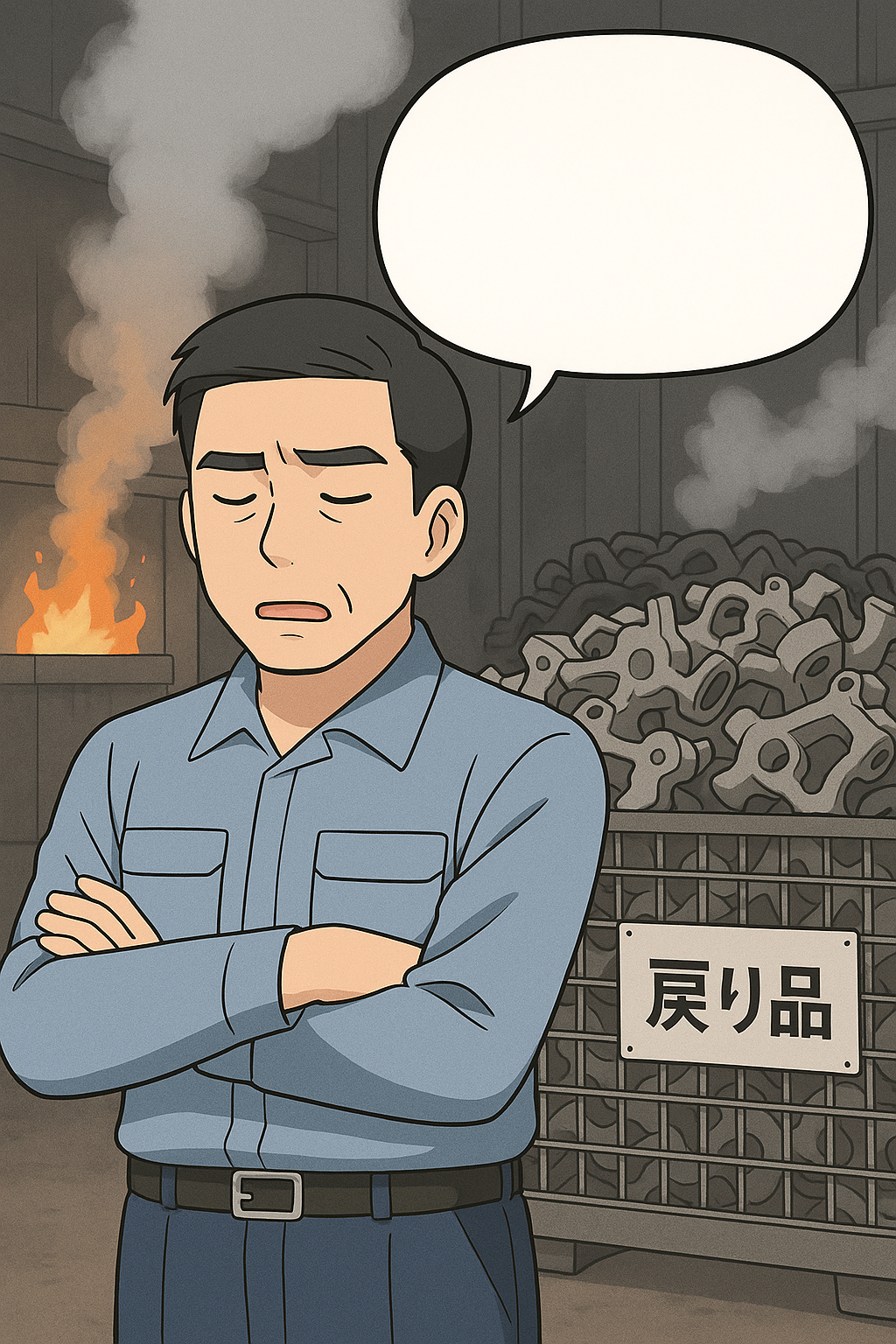 Yamasaki: "I ordered a fix for the casting defects, but the rate is up again. It’s eating into our profits, plus we have to cover machining costs and broken tooling. With this many returns, we can't re-melt it all, and scrap value is peanuts. I've told Minato until I'm blue in the face that lot variation is fatal. It stops the client's line and destroys trust. They haven't exploded at us yet, but it's a ticking time bomb..."